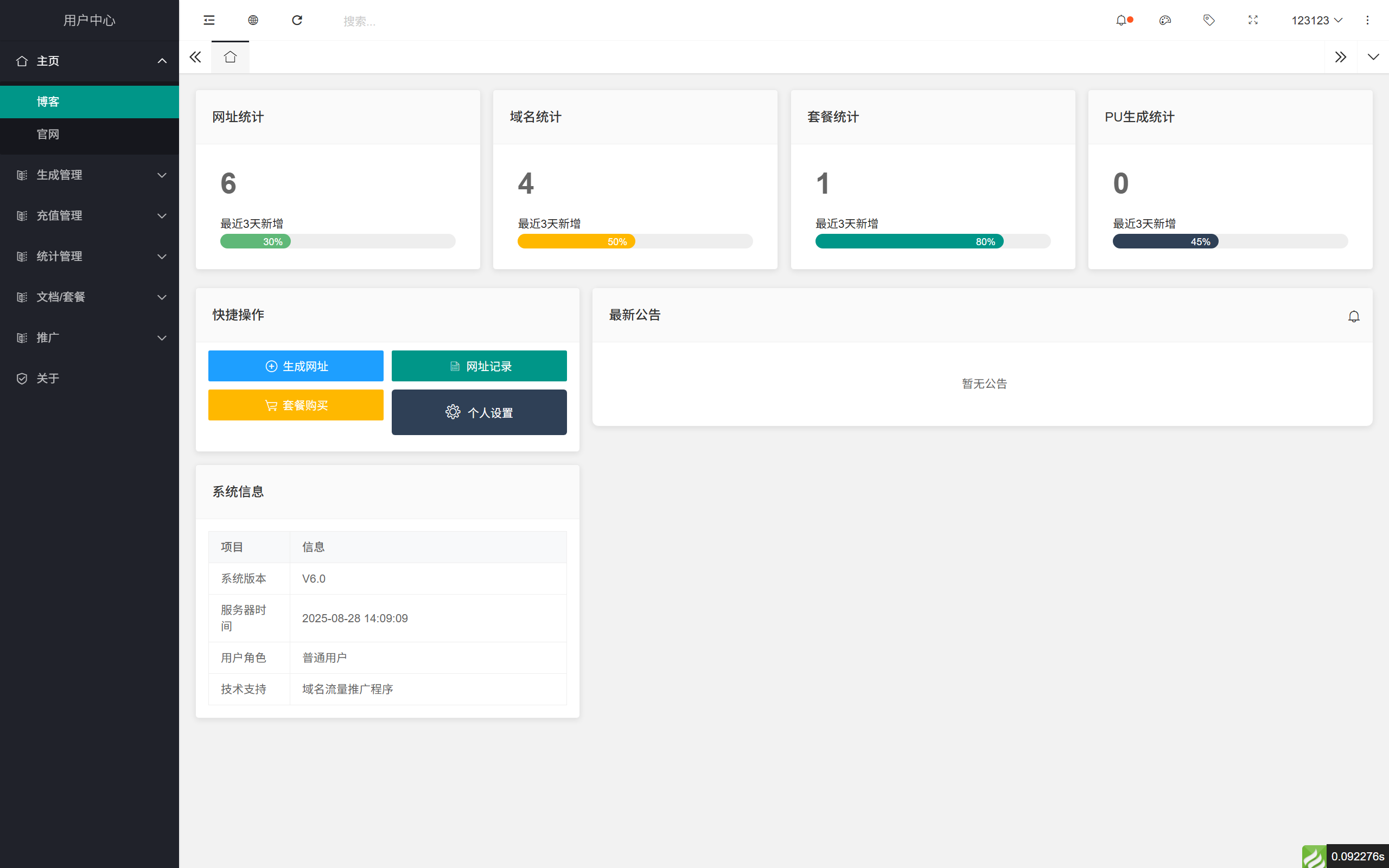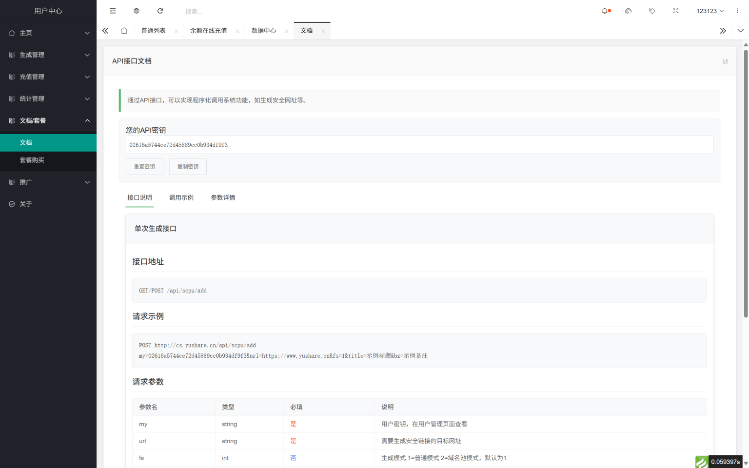 业务处理:网址生成[单次/批量生成,可选域名池,短网址,库Ua等自定义选择]数据化管理,统计每个生成的访问次数
