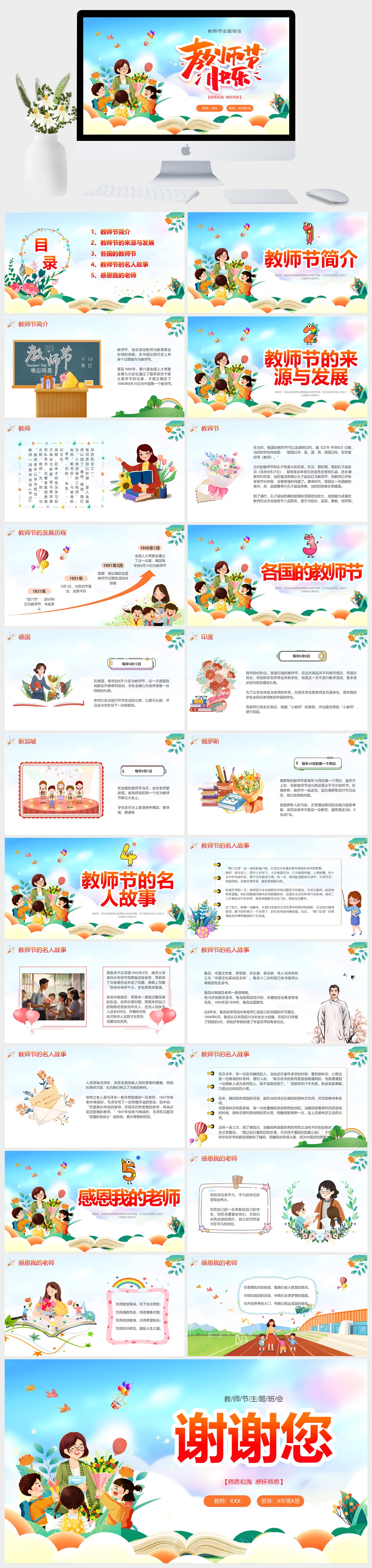 长亭素材 ppt 清新卡通风教师节主题班会教师节快乐PPT模板 https://sc.uuuseo.cn/1106.html