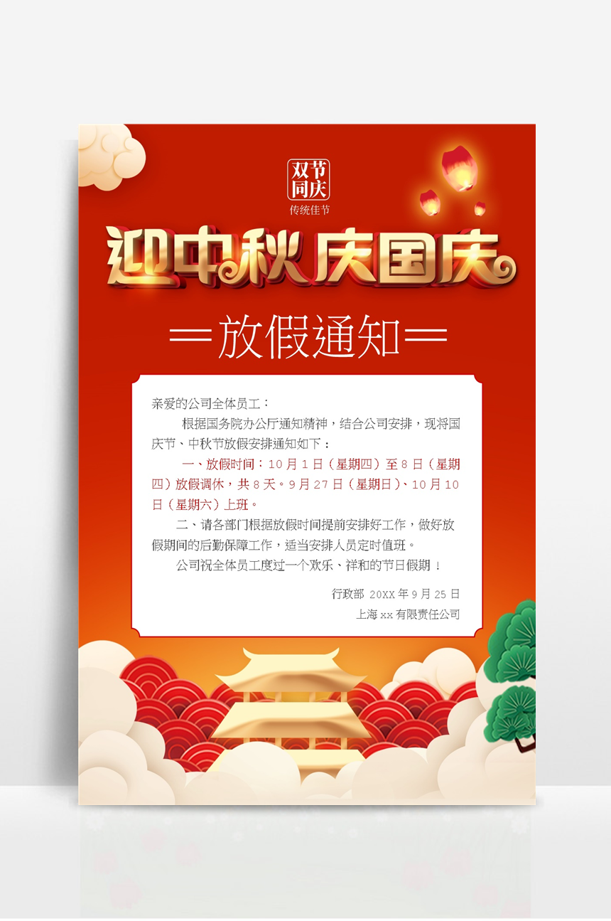 长亭素材 Word 中秋国庆节放假通知 https://sc.uuuseo.cn/1411.html