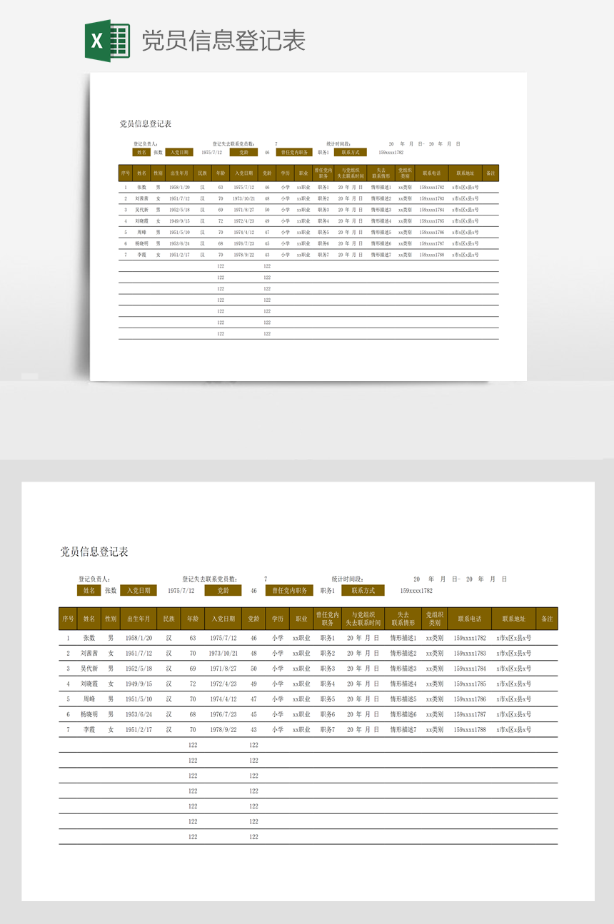 长亭素材 Excel 党员信息登记表 https://sc.uuuseo.cn/1514.html