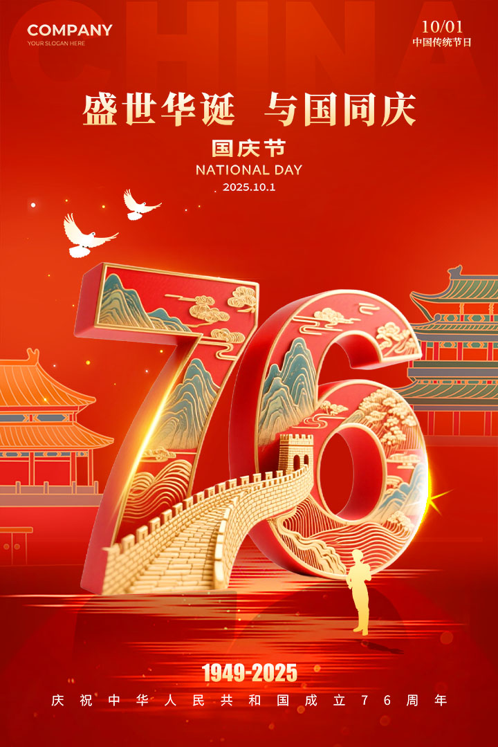 长亭素材 PSD 红色国潮风格2025国庆国庆节76周年宣传海报国庆节海报 https://sc.uuuseo.cn/1542.html