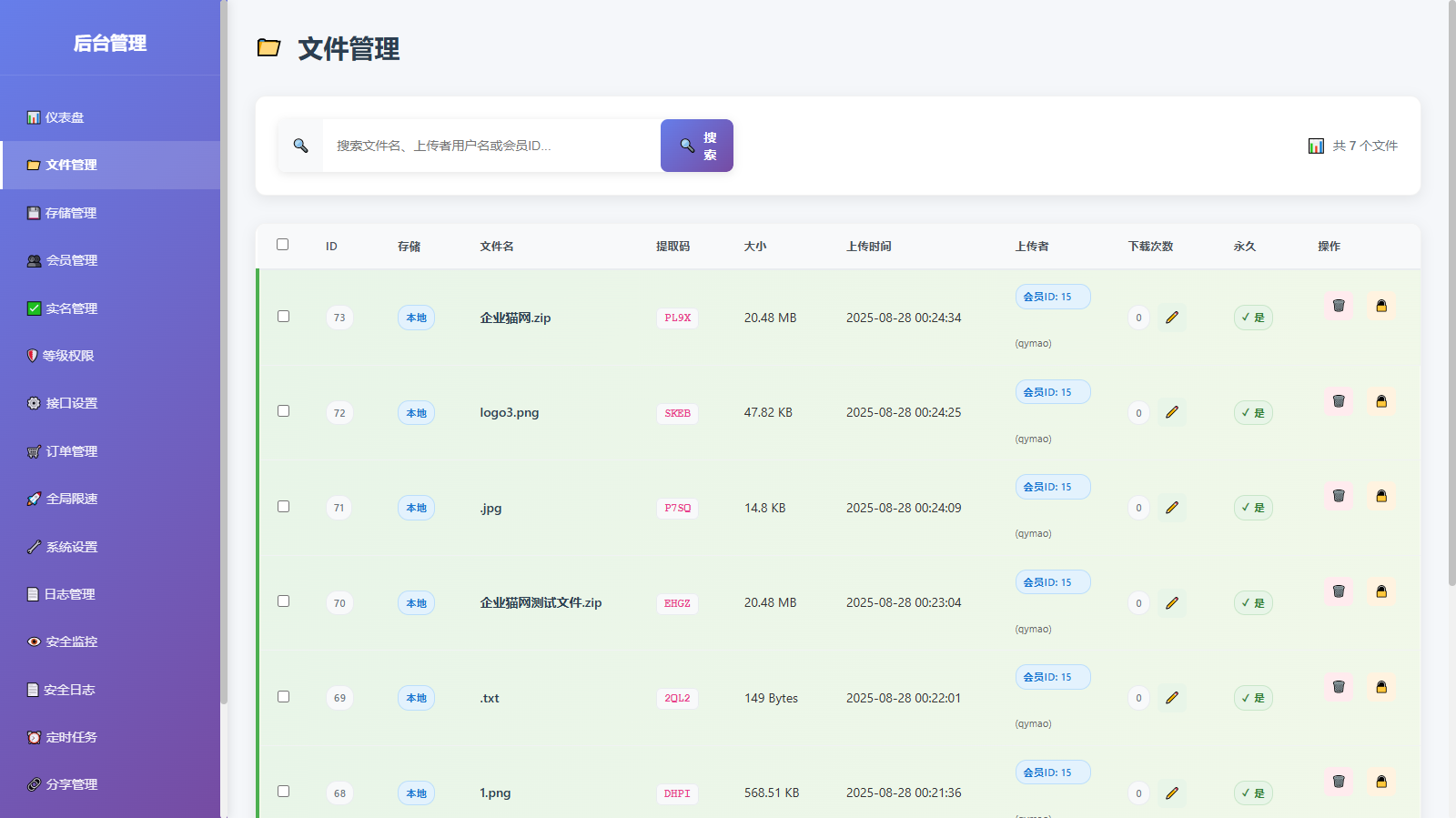 后台会员等级权限支持设置每个等级的用户上传的文件,是否默认永久存储
