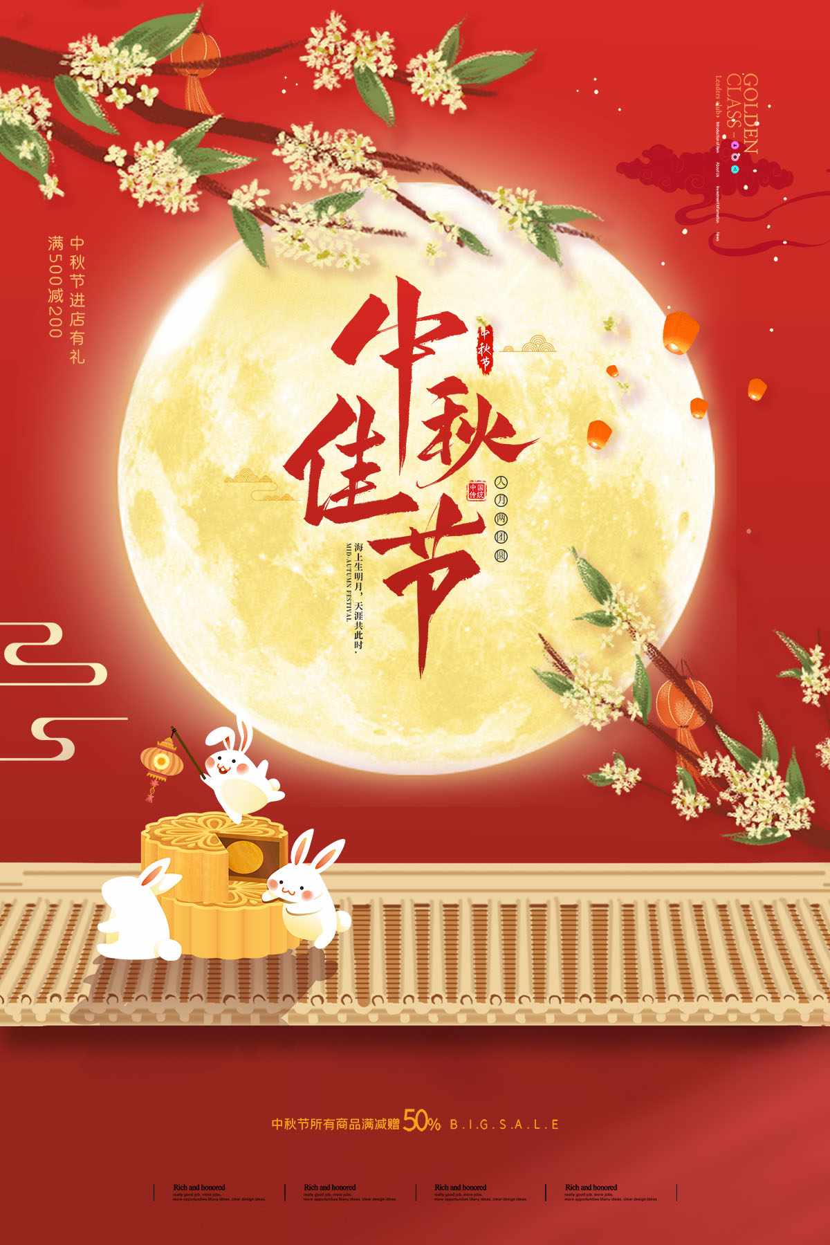 长亭素材 PSD 红色简约大气月亮创意中秋节海报 https://sc.uuuseo.cn/1883.html