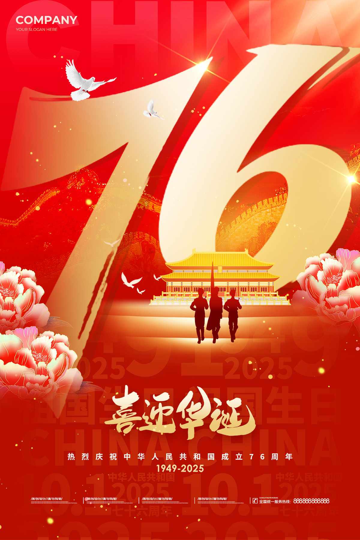 长亭素材 PSD 红色数字创意风格2025喜迎华诞国庆节76周年宣传海报 https://sc.uuuseo.cn/1894.html